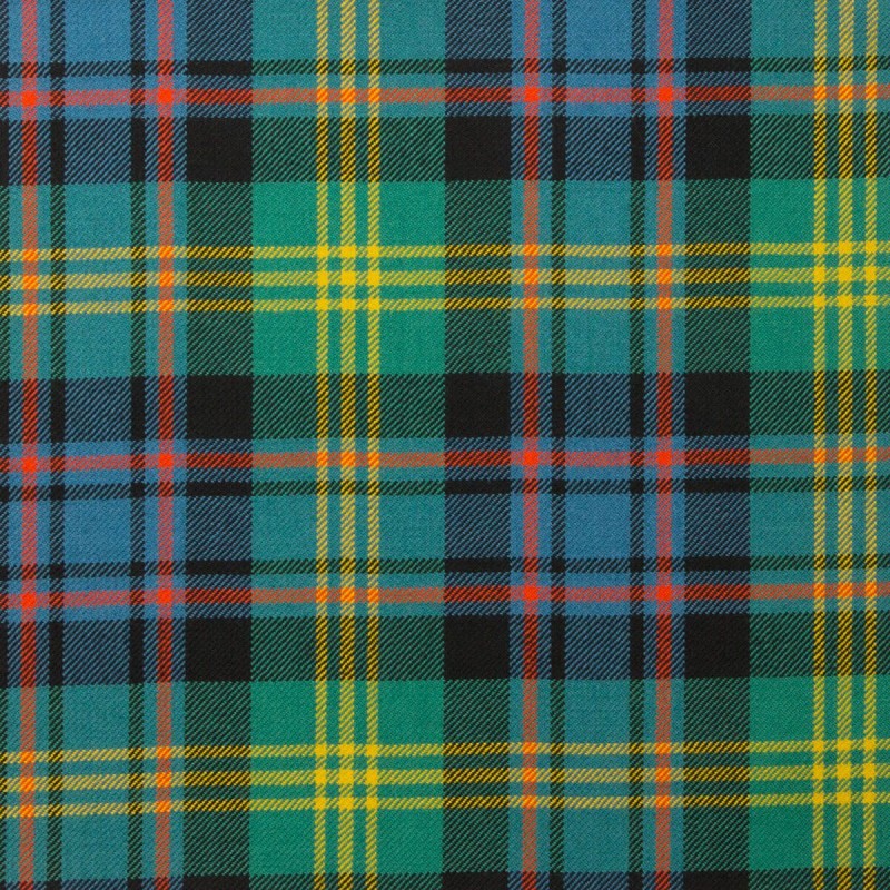Watson Ancient Tartan is a vibrant green and blue based tartan with orange and yellow overchecks. Woven using 100% Pure New Wool this tartan is available for made to measure products, accessories, soft furnishings and craft projects...