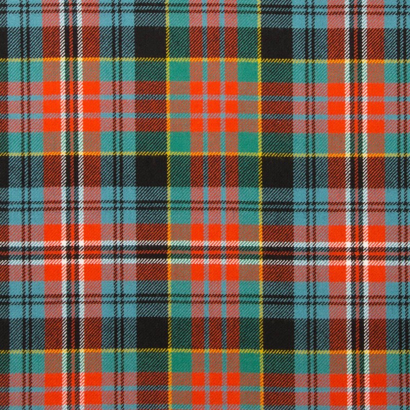 Kidd Ancient Tartan is a colourful tartan with shades of orange, green and blue, with a yellow overchecks. Woven using 100% Pure New Wool this tartan is available for made to measure products, accessories, soft furnishings and craft projects...