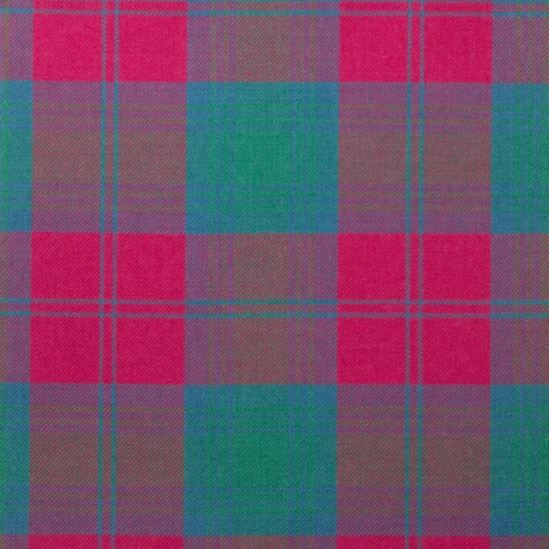 Lindsay Ancient Tartan is a pink-based tartan with shades of green and blue. Woven using 100% Pure New Wool this tartan is available for made to measure products, accessories, soft furnishings and craft projects.