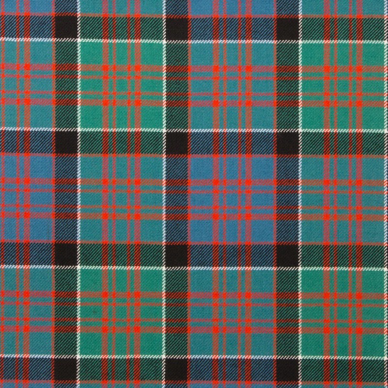 MacDonald of Clanranald Ancient Tartan is a bright green and blue-based tartan with red overchecks. Woven using 100% Pure New Wool this tartan is available for made to measure products, accessories, soft furnishings and craft projects.