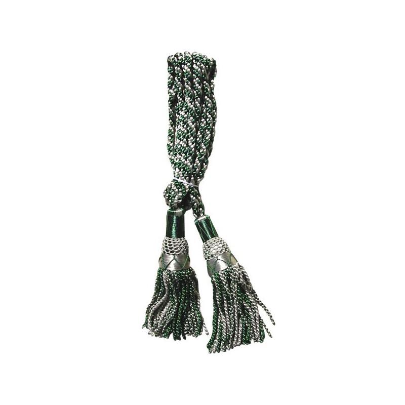 Multi color Green & White hand made 100% silk bagpipe drone cord highest quality with Scottish style tassels use to decorate and hold the drones in position of Scottish or great highland bagpipe.