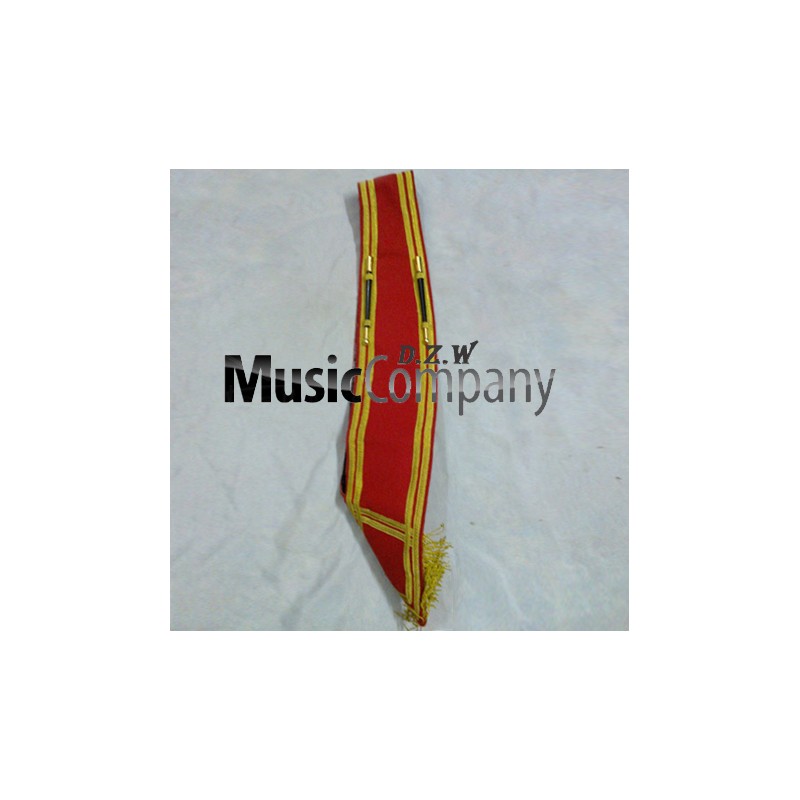Drum majors baldric sash without badges or scrolls made in red blazer with gold braid and fringe.
