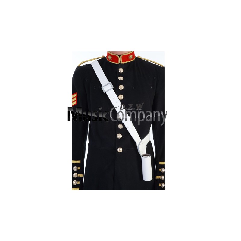 Bell Lyre sling made by white leather 2 1/2" width with chrome fitting heavy duty D-ring evenly distributed over the shoulder...