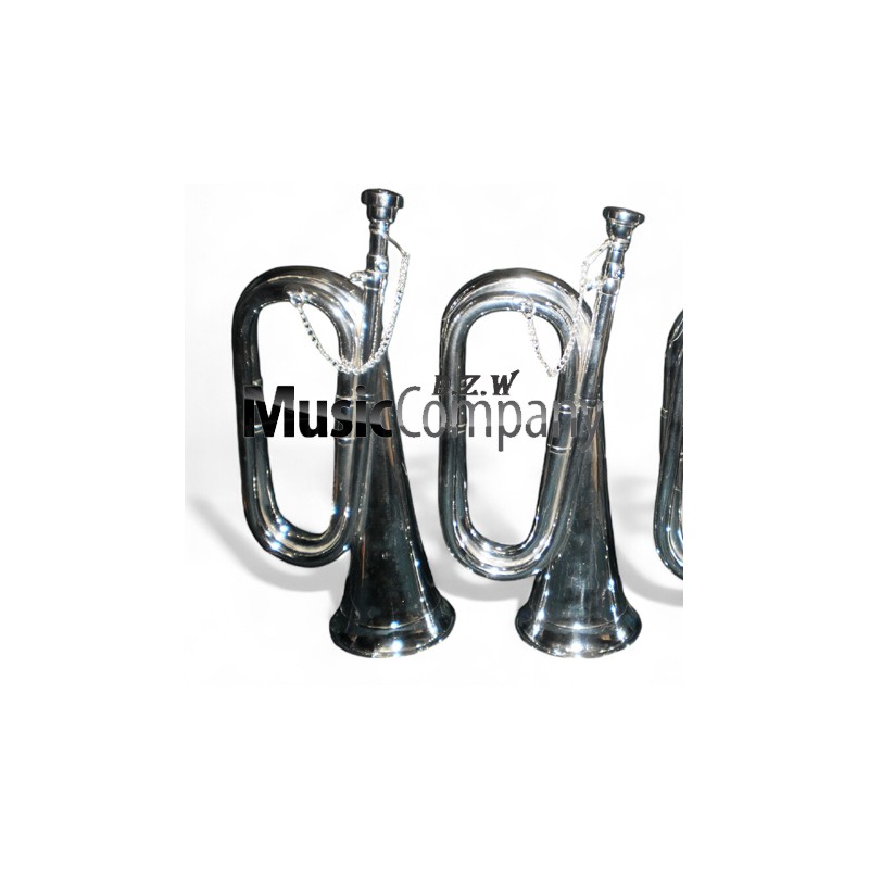 Bb Regimental Cavalry Style bugle tunable 24oz regulation model made in all brass and silver plated high finishing with nickel plated mouthpiece and chain play in pipe band and other bands.