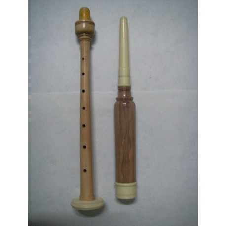 Practice Chanter made in cucas wood natural finishing, white plastic tip on the top with ivory plastic ferrule and sole!