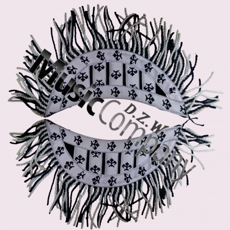 Irish guards drummer ceremonial tunic shoulder wings white embroidery trim with white and navy fringe high quality melton wool body, removeable wings with attachment hooks sewn on underside corners...