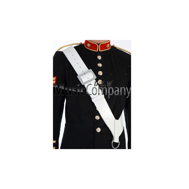 Side/Tenor drum sling made by white leather 2" width with chrome fitting heavy duty D-ring evenly distributed over the shoulder...