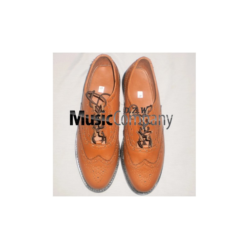 Men Tradiitional Celtic Tan Brown Ghillie Brogues made by genuine 100% leather upper for comfort and durability with leather sole modern extra grip on the dance floor, including traditional full length lace with leather tassels.