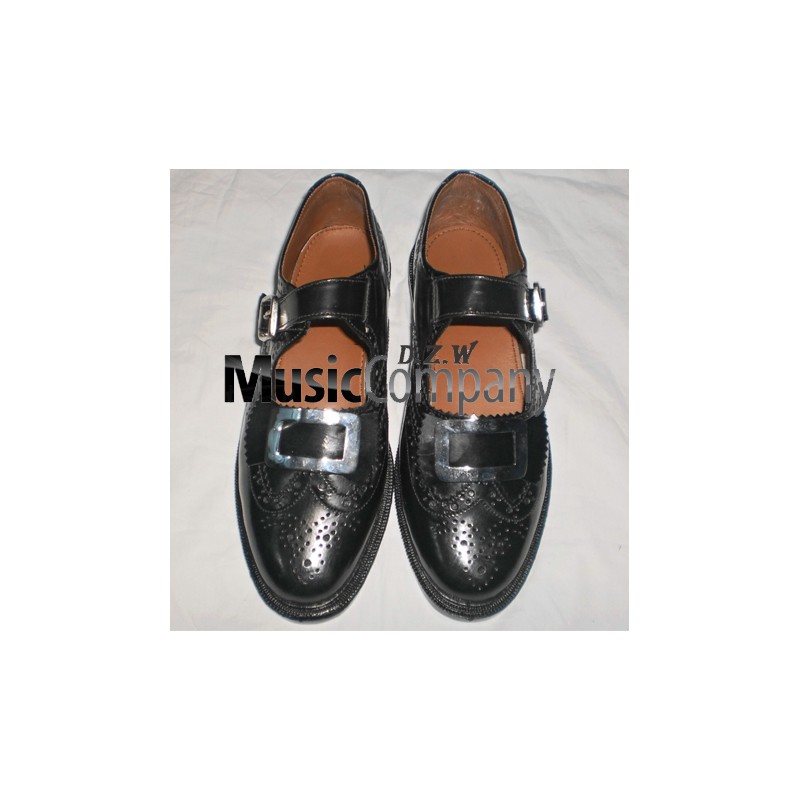 Black Silver Buckle Kilt Ghillie Brogues Leather Upper with Leather Sole