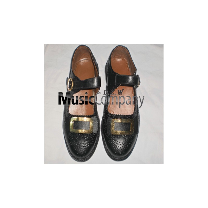Black Gold Buckle Kilt Ghillie Brogues Leather Upper with Leather Sole