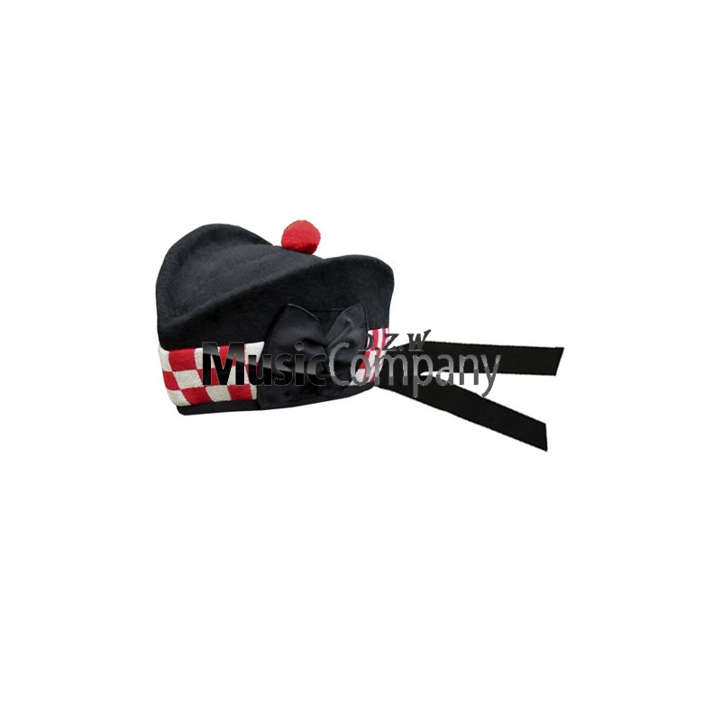 Red & white wool diced, black 100% blazer wool body of glengarry hat with red hand made wool ball or pom pom, use for military guards, army piper and drummers...