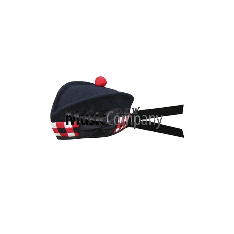 Navy blue & red & white wool diced, navy blue 100% blazer wool body of glengarry hat with red hand made wool ball or pom pom, use for military guards, army piper and drummers...