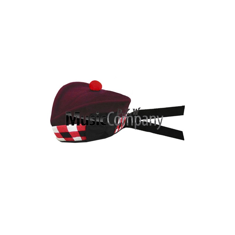 Maroon & red & white wool diced, maroon 100% blazer wool body of glengarry hat with red hand made wool ball or pom pom, use for military guards, army piper and drummers...