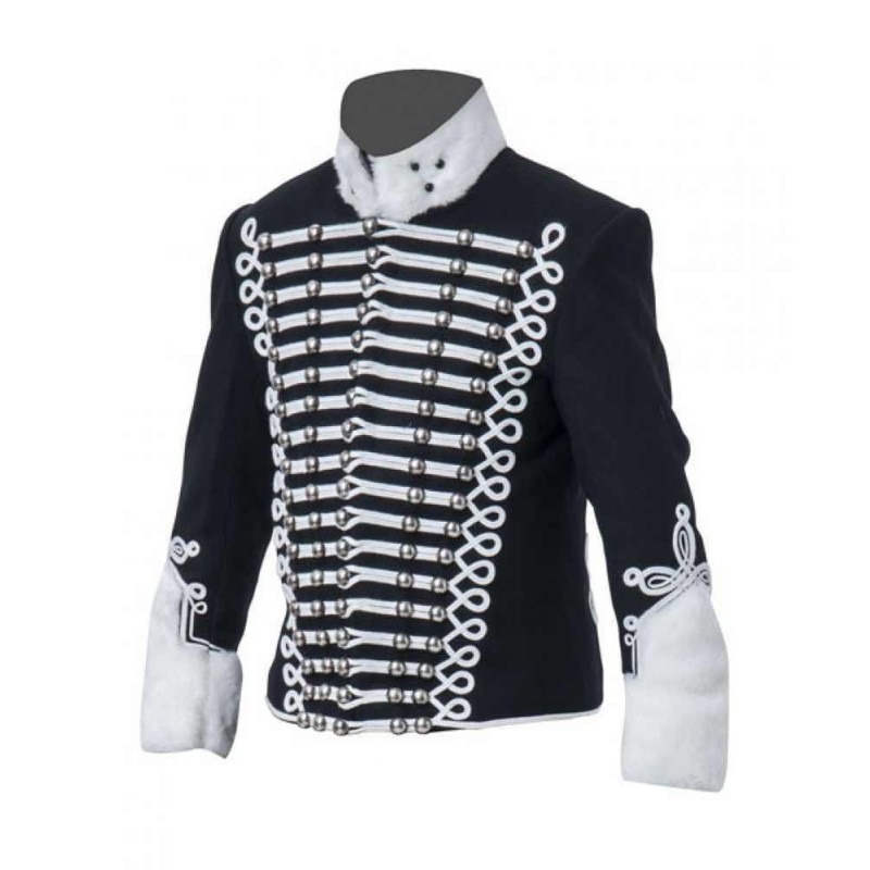 Prussian Hussars Napoleonic war uniforms Pelisse Jacket black color body 100% heavy weight wool faux seal fur on collar and cuffs...