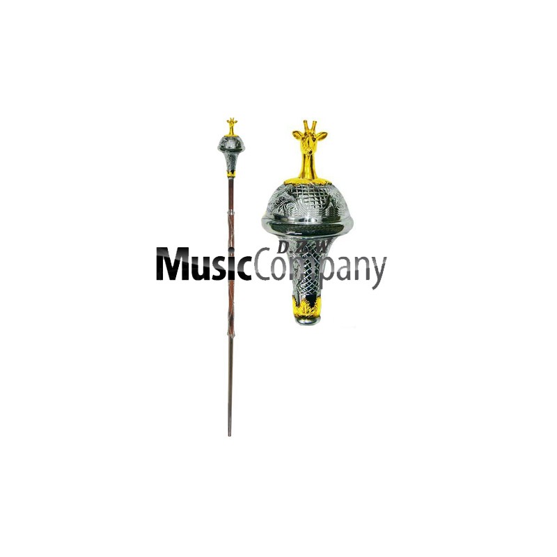 Drum Major's mace mallaca cane nickel plated chain and nickel plated ferrules with nickel plated engraved trumpet shape head and gold color crown deer...