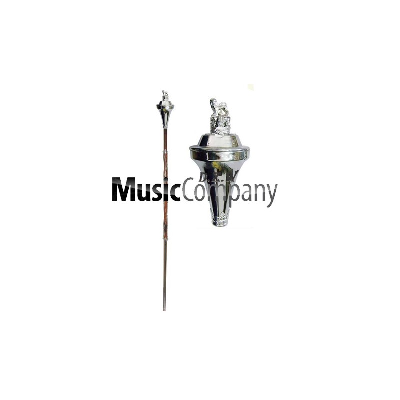 Drum Major's mace mallaca cane nickel plated chain and nickel plated ferrules with nickel plated flat plain trumpet shape head and nickel plated crown and lion...