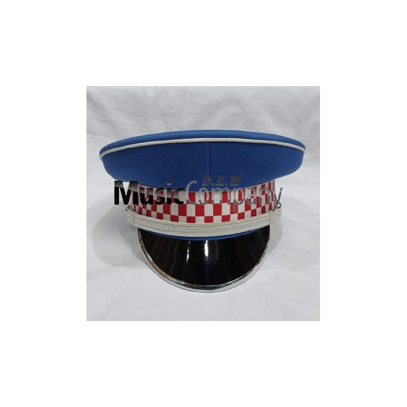 Marching band peak hat made by high quality fabric nice product use in marching band people with red and white dice and sliver cord...