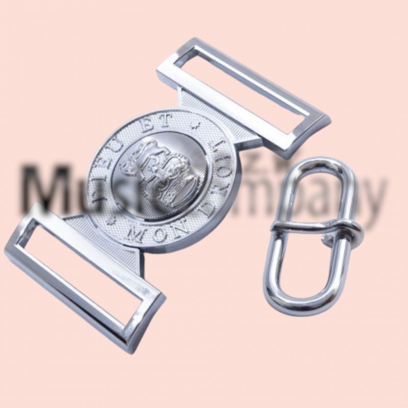 Marching band parade general service belt buckle with 2 side buckle silver finish 45mm Width (1 3/4″) use for leather or pvc parade belt.