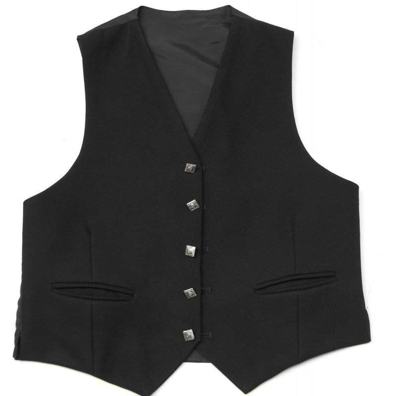 Prince charlie scottish style kilt jacket with vest black color wool cloth with nickle plated nickle scottish style 5 buttons on waistcoat...