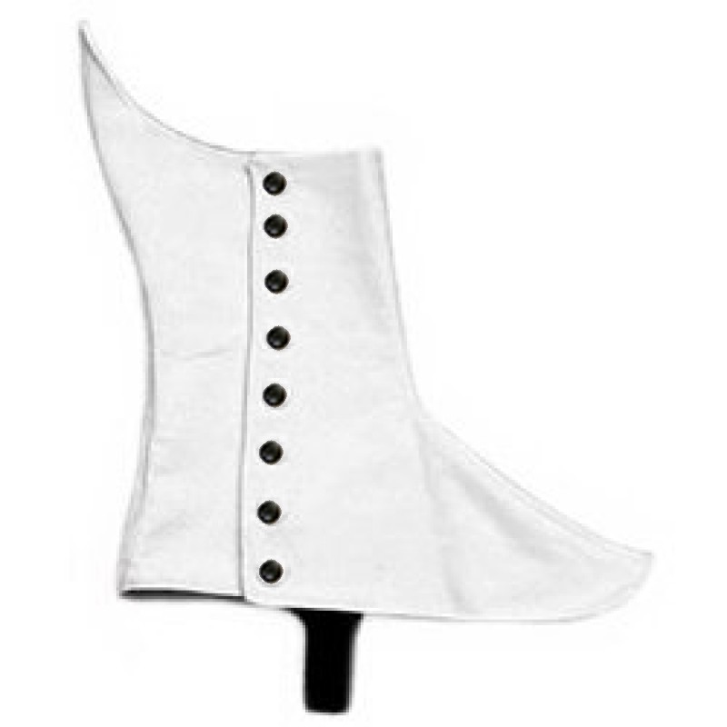 These white military spats come with white buttons that close with Velcro and have a black elastic shoe band...