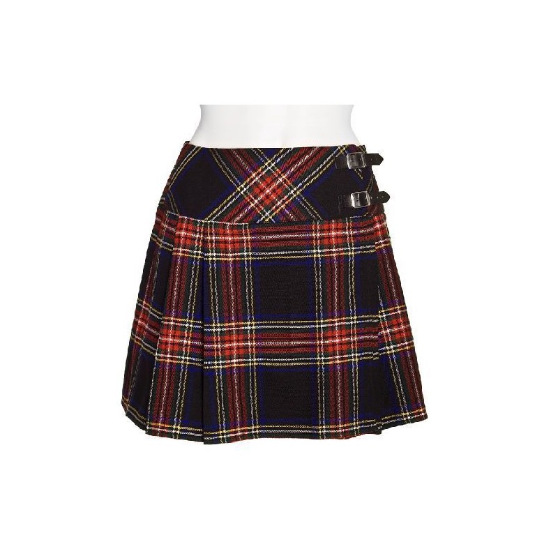 Ladies Black Stewart Scottish Mini Billie Kilt Mod Skirt