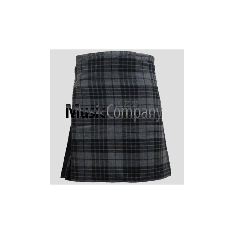 Grey Granite Tartan Kilt with fringe on the right hand side to give an authentic finish of the Scottish traditional kilt. It has straps which fasten at the side and can be adjusted by around 3"-4". It also has belt loops sewn on the back to keep a Tartan kilt belt in place. This Scottish kilt has been designed so that you can wear it in any situation...