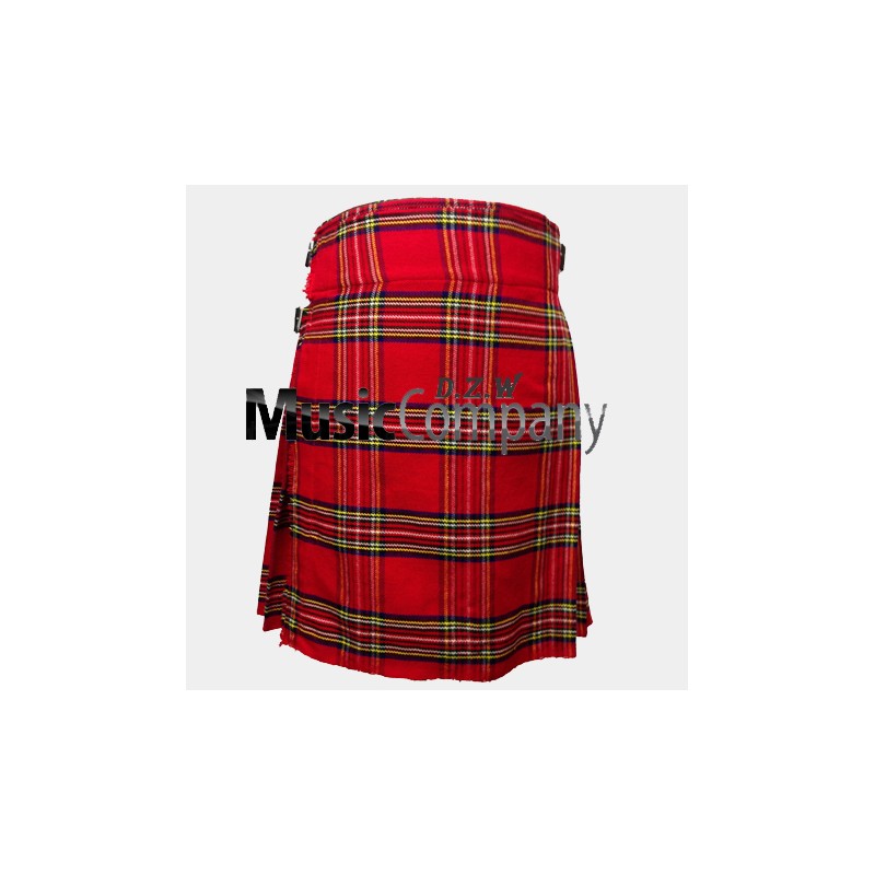 Royal Stewart Tartan Kilt with fringe on the right hand side to give an authentic finish of the Scottish traditional kilt. It has straps which fasten at the side and can be adjusted by around 3"-4". It also has belt loops sewn on the back to keep a Tartan kilt belt in place. This Scottish kilt has been designed so that you can wear it in any situation...