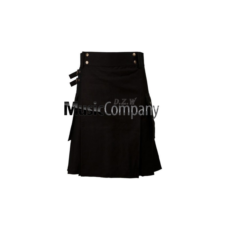 Military black cotton scottish caual utility kilt for men and women with leather strap buckle...
