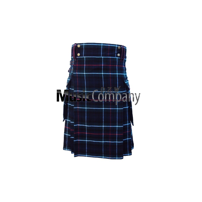 Mackenzie tartan utility kilt our handmade in 100% acrylic wool with leather strap nickel plated buckle.