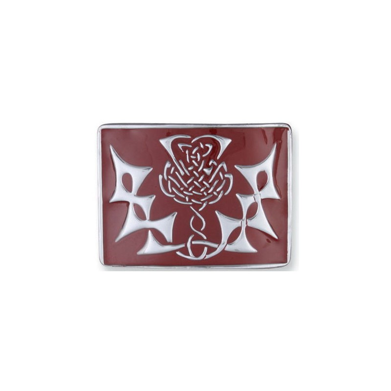 Highland thistle kilt waist belt buckle made in brass red colored...